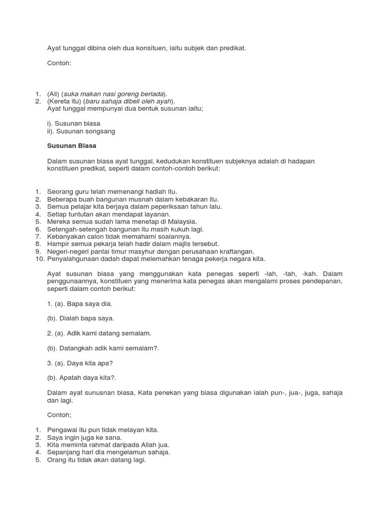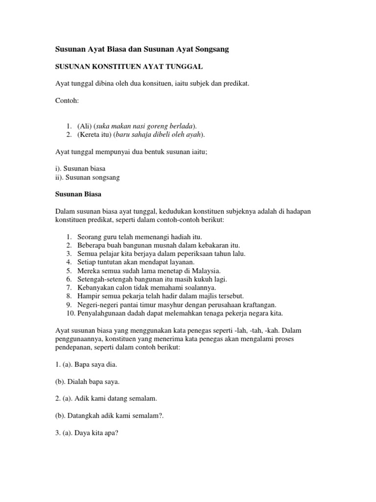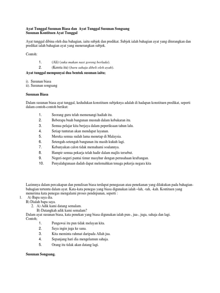 Ayat Tunggal Susunan Biasa Dan Pdf
