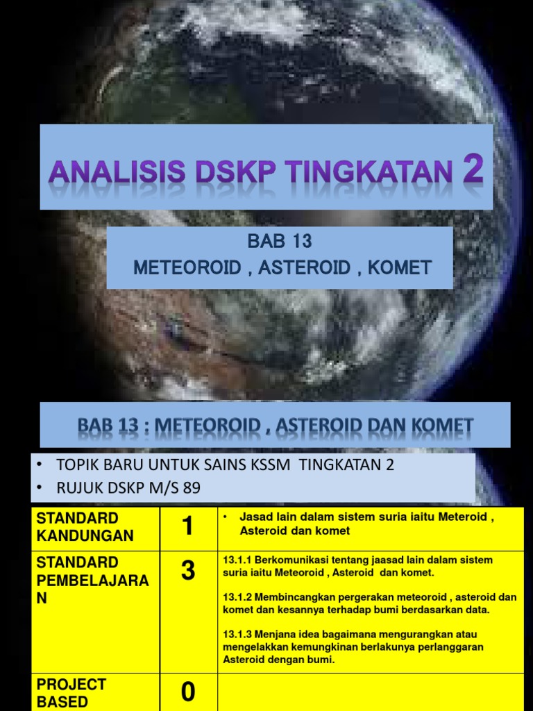 Sains Tingkatan 2 Bab 13 Meteoroid Asteroid Komet